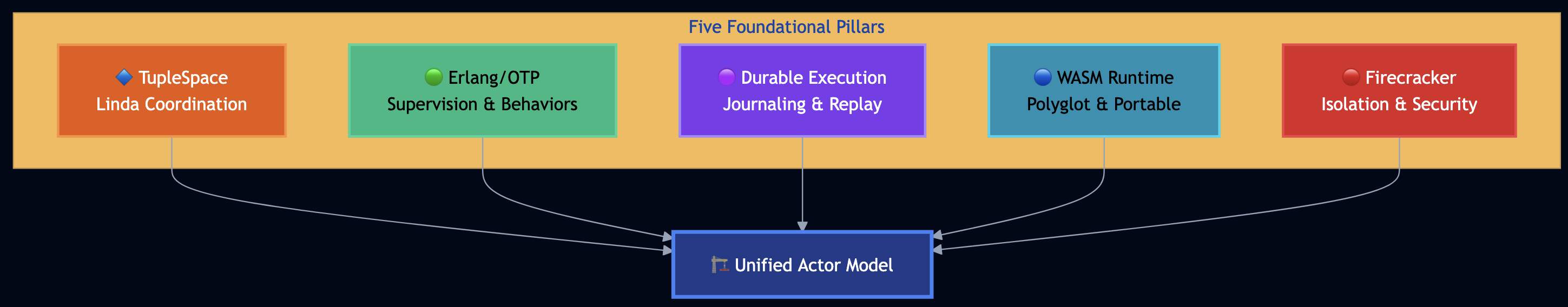 PlexSpaces combines five foundational pillars into a unified distributed computing platform:
