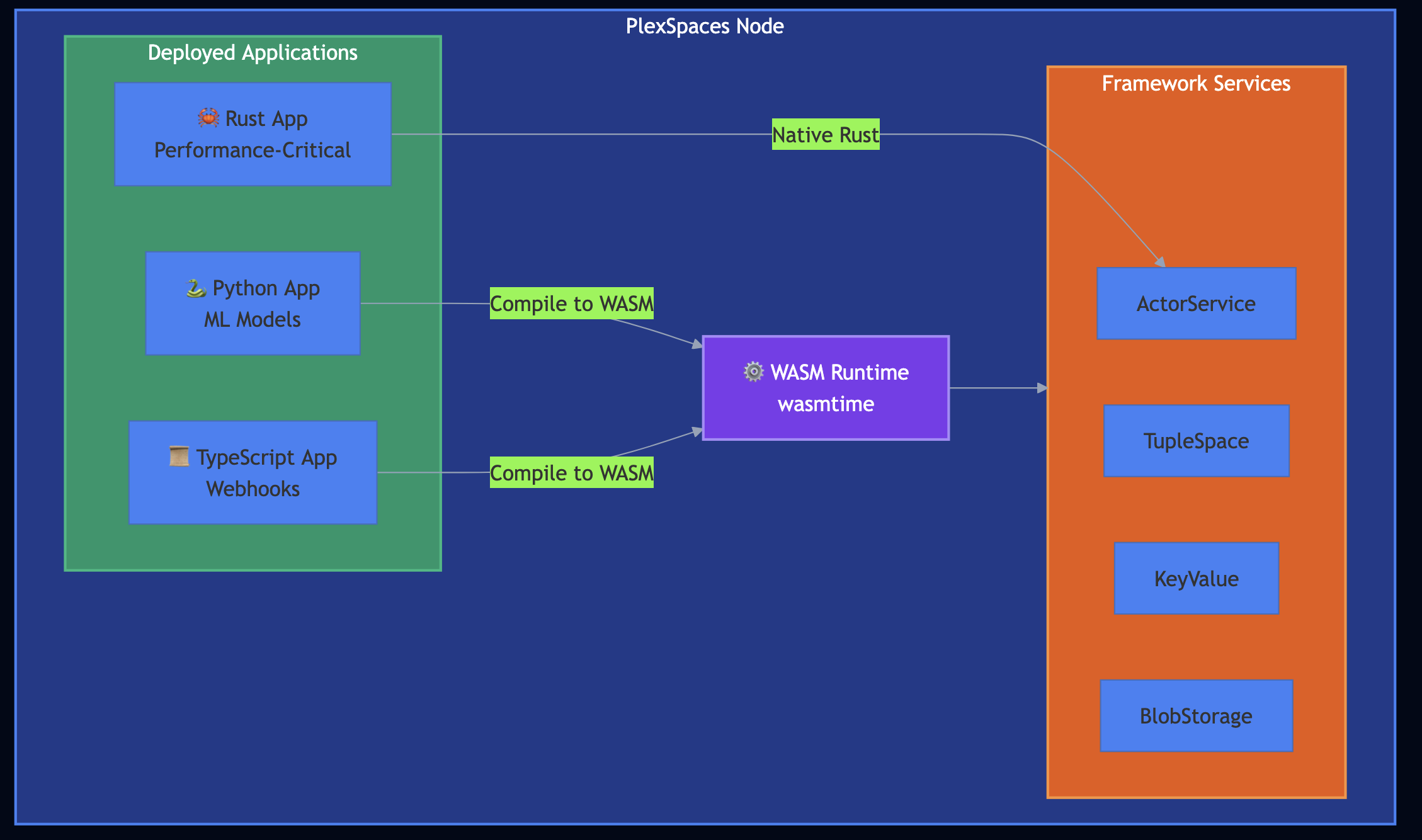 - WASM Runtime: Actors compile to WebAssembly and run in a sandboxed environment. Python, TypeScript, Rust with same deployment model, same security guarantees.
